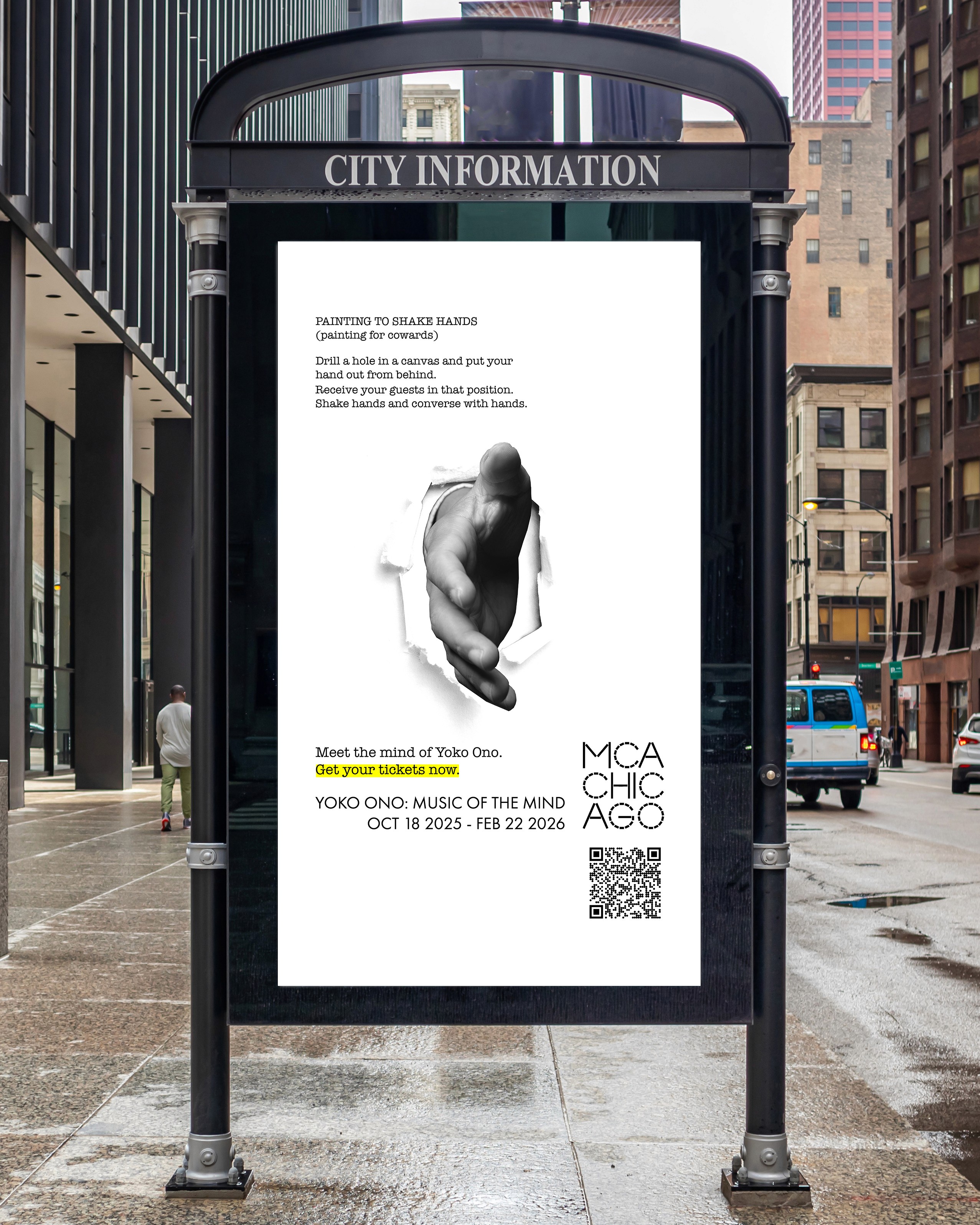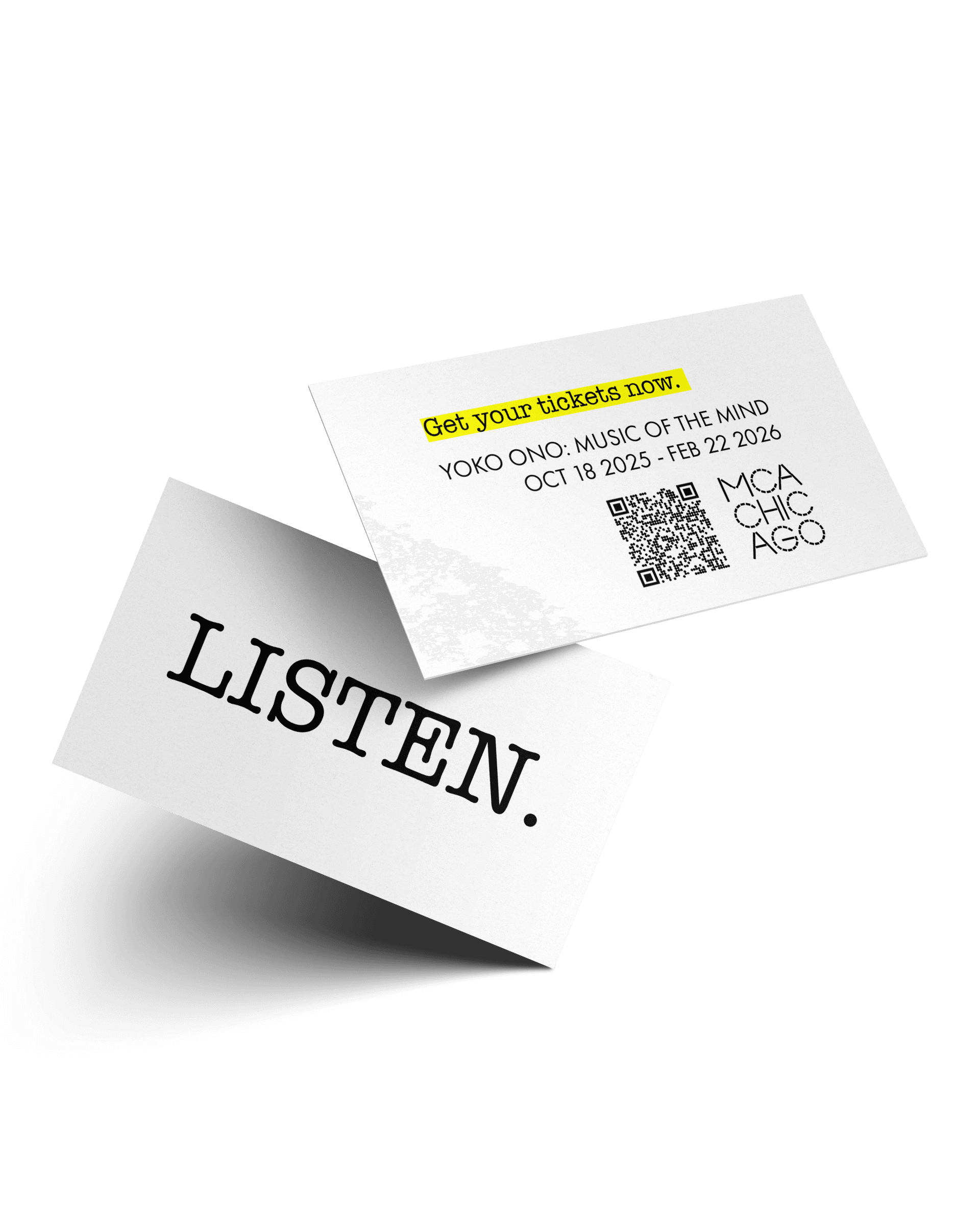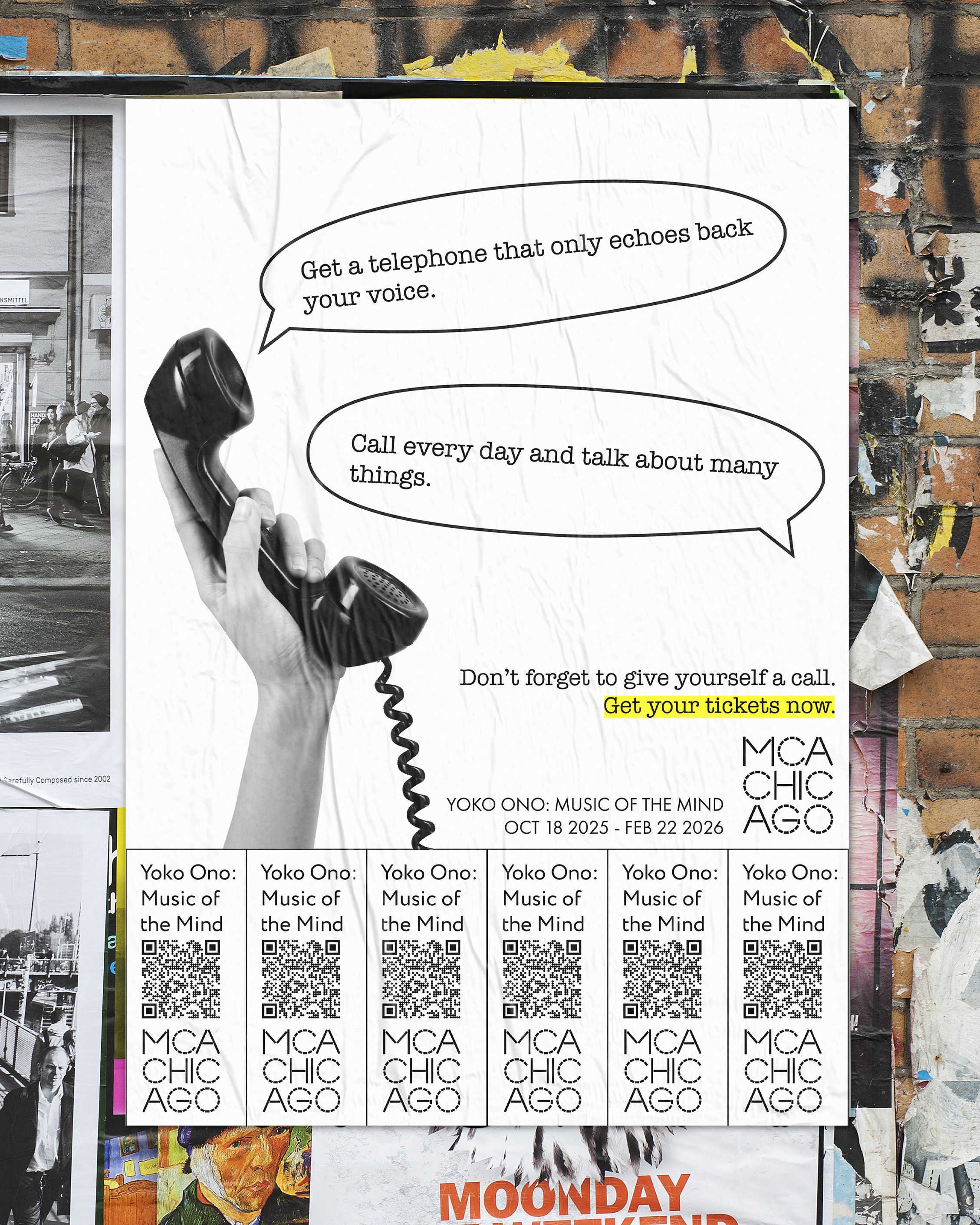 On view at the MCA as the only US venue, Yoko Ono: Music of the Mind presents one of the most comprehensive exhibitions of Yoko Ono's work to date.